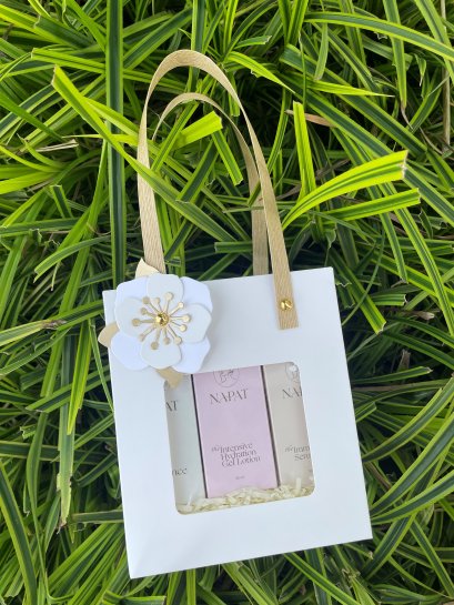 Napat / นภัทร ผลิตภัณฑ์สำหรับผิวหน้า __________________________________________ Skincare Set / ชุดดูแล ฟื้นฟูผิวหน้า 3 ขวด ประกอบด้วย __________________________________________ the Aura Essence / ดิ ออร่า เอสเซนส์ - 30 ml the Intensive Hydration Gel Lotion / ดิ อินเซนทีฟ ไฮเดรชั่น เจล โลชั่น - 30 ml the Immortality Serum / ดิ อิมมอร์ทัลลิตี้ เซรั่ม - 30 ml __________________________________________