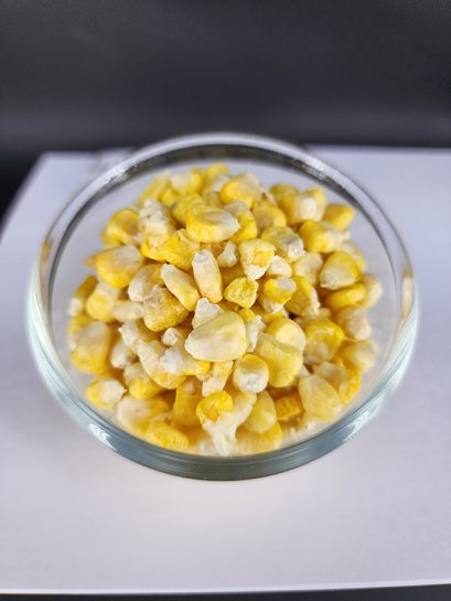 ข้าวโพดหวานจากเกษตรกรไทย ผ่านกระบวนการอบให้แห้งด้วยวิธีฟรีซดราย คงความกรอบ คงคุณค่าทางโภชนาการ ไม่เติมสารแต่งรส กรอบ หอม หวานด้วยรสข้าวโพดจากธรรมชาติ