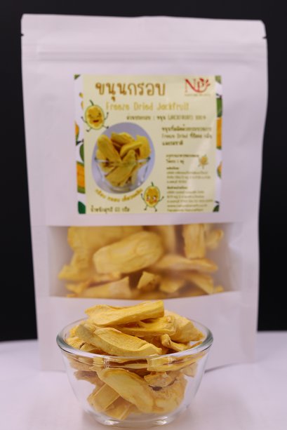 ขนุนจากสวนเกษตรผลไม้โดยตรง คัดเลือกเนื้อแก่พอดี ไม่สุกงอม นำมาผ่านกระบวนการทำให้แห้งแบบแช่แข็ง (ฟรีซดราย) เพื่อให้ขนุนคงคุณค่าทางโภชนาการไว้อย่างครบถ้วน ซองฉีกรับประทานได้ทันที หรือนำไปใช้เป็นส่วนประกอบของอาหาร เช่น Crush ขนุนในน้ำสลัด หรือใช้เป็น Crush โรยบนหน้าเค้ก เป็นส่วนประกอบในไอศกรีม ขนมหวานได้หลายหลาย รสชาติหอม อร่อย